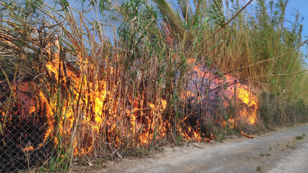 El Centro de Coordinación de Emergencias 1-1-2 Región de Murcia recibía a partir de las 18:01h varias llamadas dando aviso sobre un incendio de cañas y matorral en el margen del Río cerca de la Presa en el término municipal de Cieza.