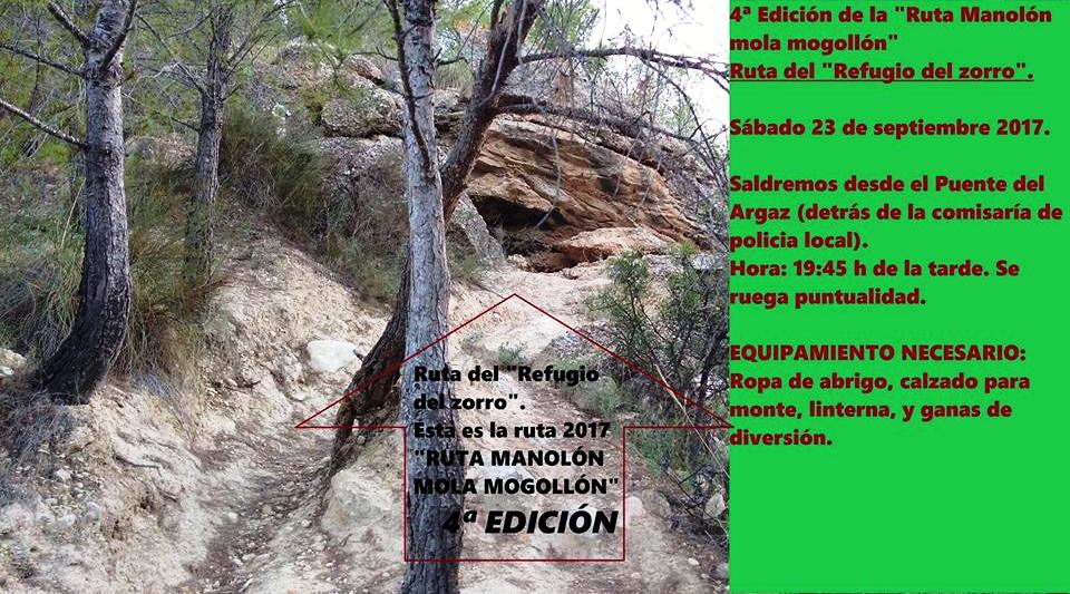 Llega a su cuarta edición la “ruta manolón mola mogollón”, refugio del zorro. Está organizada por un grupo de amigos de Cieza, y nosotros nos hacemos eco de su evento.