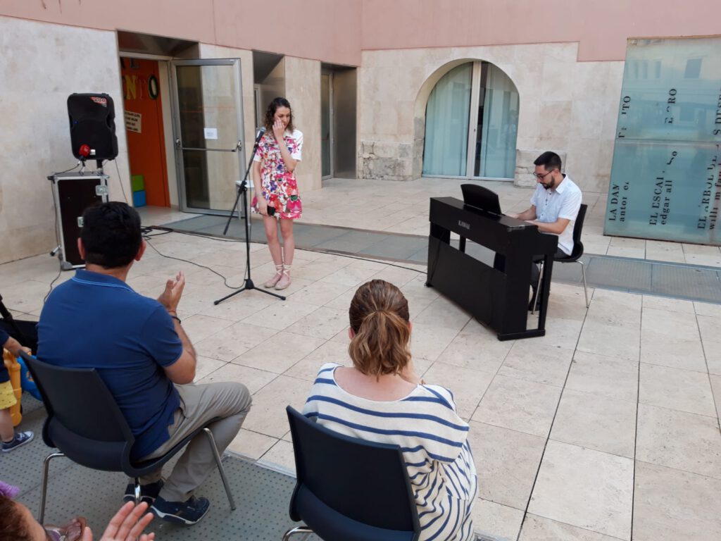 La conmemoración tuvo lugar este jueves por la tarde en la terraza de la Biblioteca Municipal Padre Salmerón, donde María Cobarro leyó el poema ‘Mariposas’, de Marcos Abraham, acompañada al piano por Antonio Jesús Hernández Alba. El compositor ciezano interpretó un bolero suyo titulado ‘Y no hay más por qué’.