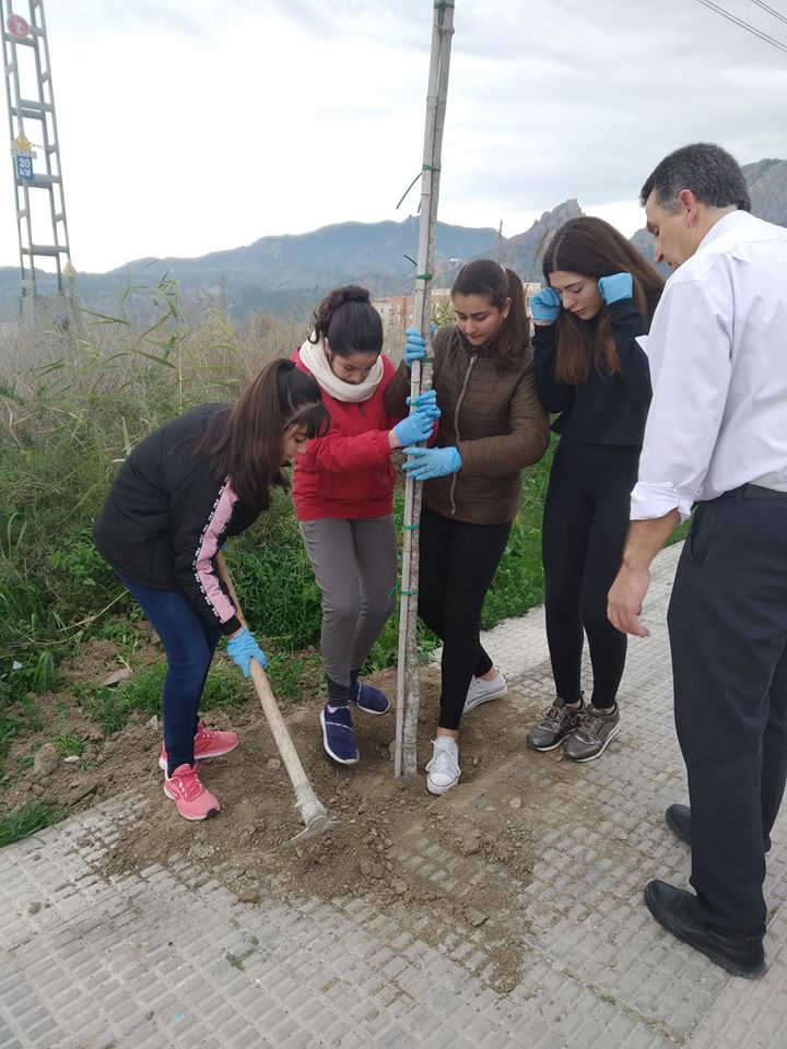On the morning of Thursday, December 19, and in collaboration with the Cieza City Council, the 1st ESO students of IES Los Albares repopulated the sidewalk of Avenida José Ríos Gil with various types of trees, contributing to the beautification of the road and the reduction of the carbon footprint.
