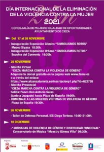 The activities began this Wednesday with the opening of the aforementioned comic book exhibition at the Siyasa Museum and the Convent Corner, and will continue on November 25 with the virtual march 'Cieza marches against gender violence' and the in-person march whose route will take place between the Paseo Don Antonio Salas and the Plaza de España at 7:00 p.m., the place chosen half an hour later for the institutional tribute to the women victims of gender violence.