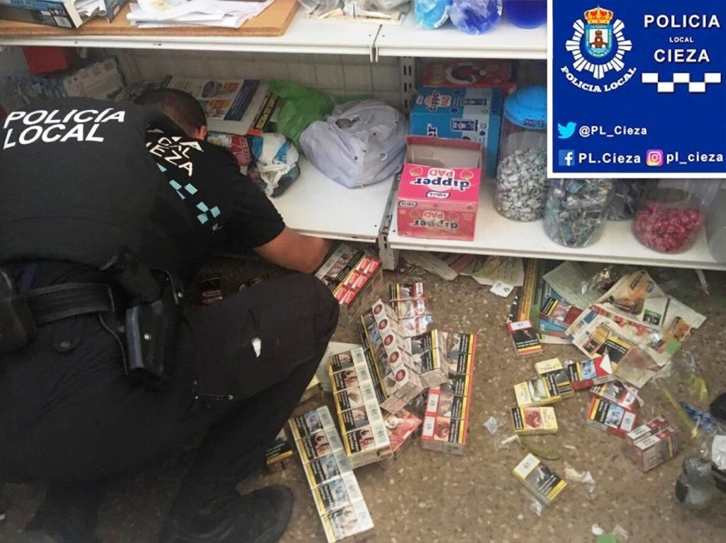 Local police in Cieza seized 373 packs of unlicensed cigarettes at a local business. The officers were conducting a special operation to prevent the consumption of drugs, alcohol, and other addictive substances when they noticed signs of unlicensed tobacco sales at a food retail store.