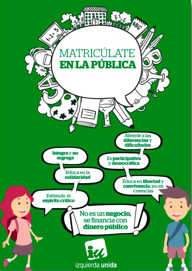 From the Education Area of IU-Greens of Cieza The educational community is encouraged to apply for a place within the network of public schools in the municipality. and advocates for enrollment in public education to defend this essential public right for the future of new generations.
