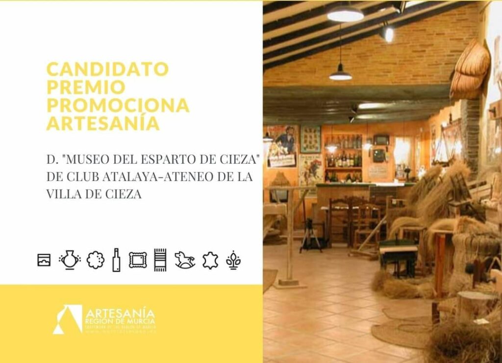The Cieza Esparto Museum has been selected among the four finalists for the Regional Handicraft Award, in the category "Promotion of Handicrafts for Private Entities."