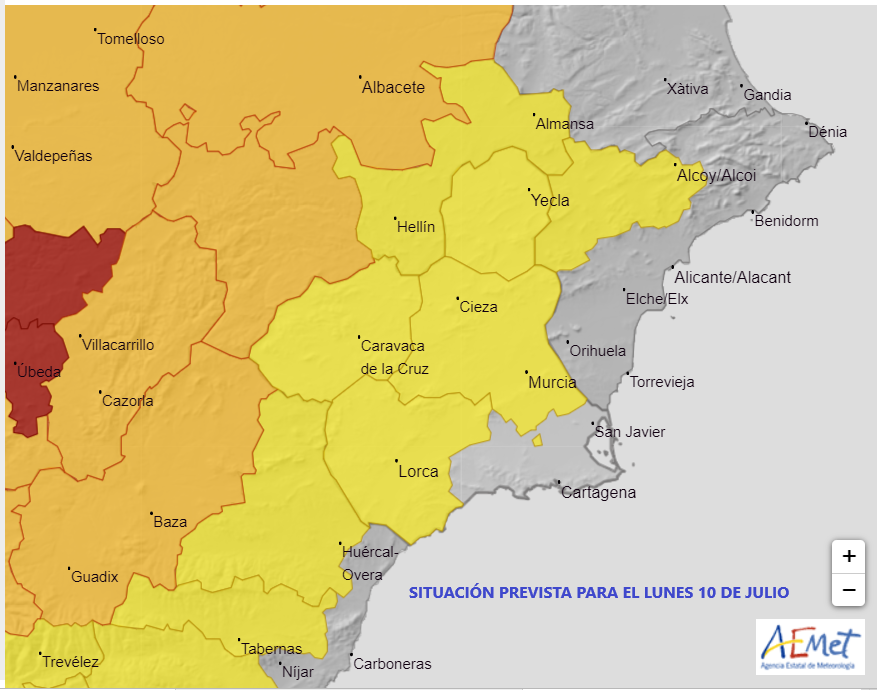 As indicated in the weekly forecast, warnings could be of different levels, including red (extreme), throughout the week, so the one corresponding to the following day will be reported daily.