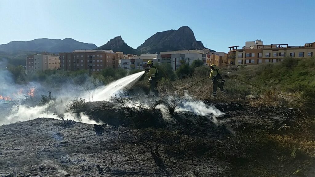 Firefighters from the Murcia Region Fire and Rescue Consortium (CEIS), along with a helicopter-transported forestry brigade and a rapid response forestry brigade, have brought under control a vegetation fire in plots of land and crops near the town of Cieza, near José Rios Gil Avenue.