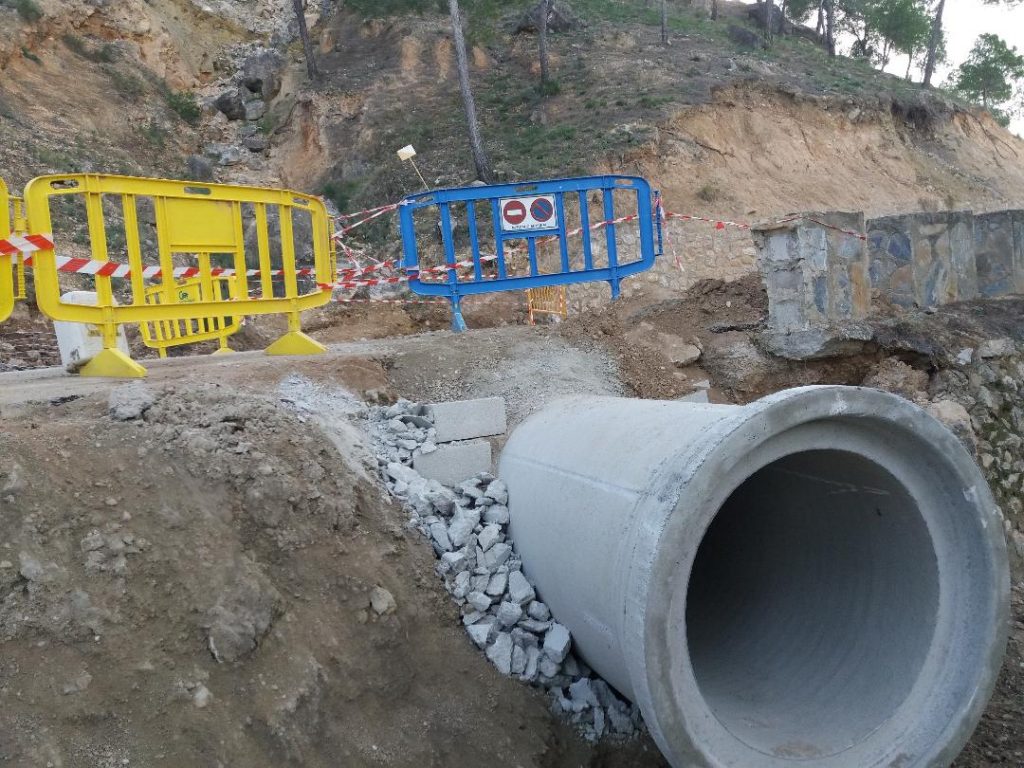 Saorín explains that The works are being carried out by the company JF Argudo and consist of the removal of debris and stones from the roadway and gutters, demolition and clean-up of the affected road surface and removal of debris to an authorized landfill, demolition of remains of collapsed wall and removal of debris to an authorized landfill, 10 m long transverse drainage work consisting of a 1,000 mm internal diameter reinforced concrete pipe, including 3 m long reinforced concrete downstream fins, variable height from 2 to 0.50 m and 0.25 cm thick and a 3 m long, 1.20 m wide and 50 cm deep footing, forming a 45º angle with the axis of the road, including a reinforced concrete frame around the mouth of the pipe to give continuity to the fins as a road surface containment system.