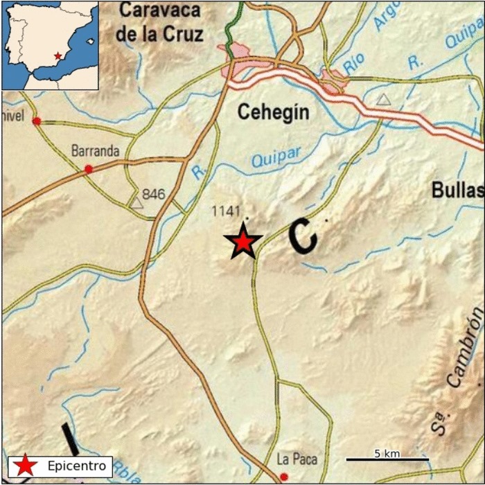 The first of these, which occurred at 1:46 a.m., had a magnitude of 3.9 on the Richter scale and was centered south of Caravaca de la Cruz. Its epicenter was 4 kilometers deep and was felt throughout much of the region, with intensity III being felt in Cieza and the Ricote Valley.