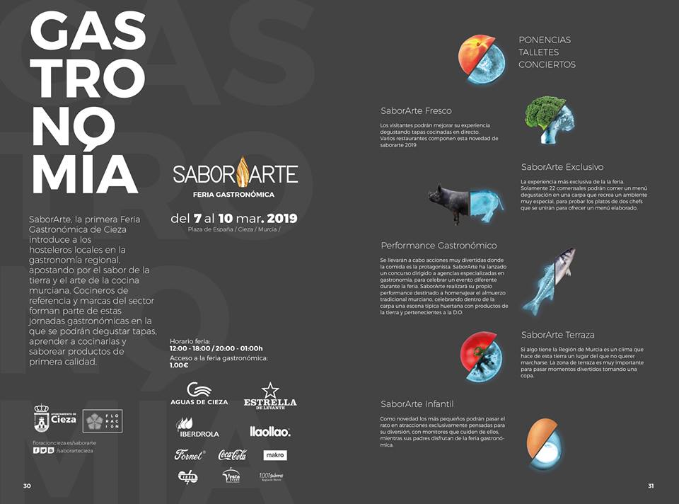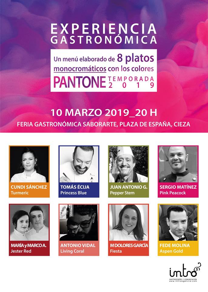 The SaborArte fair. Cieza's Floración Gastronomy Fair will host the premiere of PANTONE, a gastronomic experience created by Intro Agencies , a design company specializing in gastrodesign and advertising winner of the first contest 'SaborArte performance'.