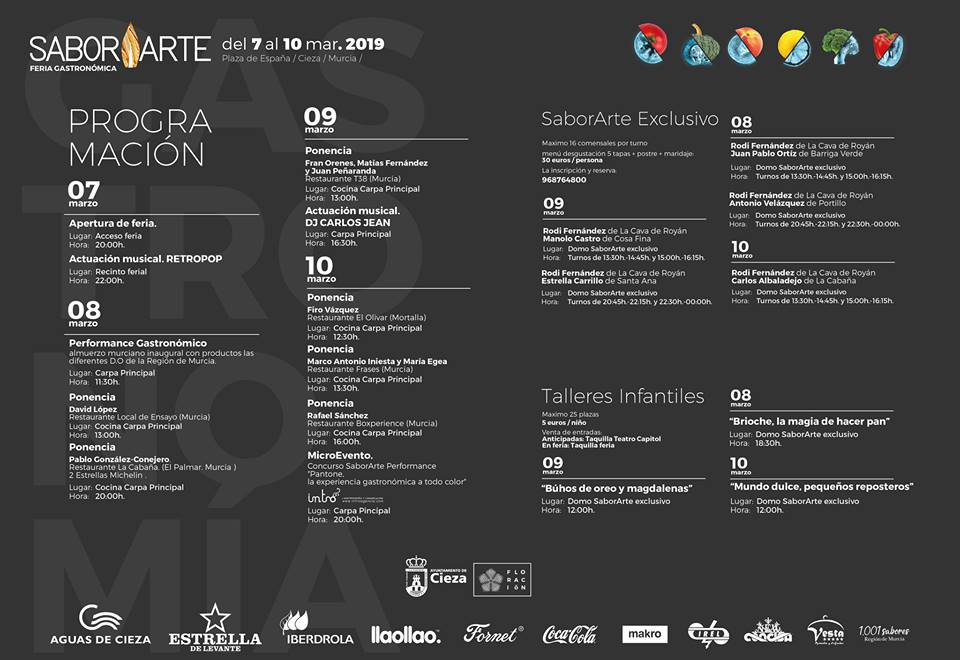 We've attached the schedule for the various activities, workshops, tastings, and talks that will be held at the third edition of 'SaborArte,' the Cieza Flowering Gastronomic Fair, led by various chefs and cooking professionals.