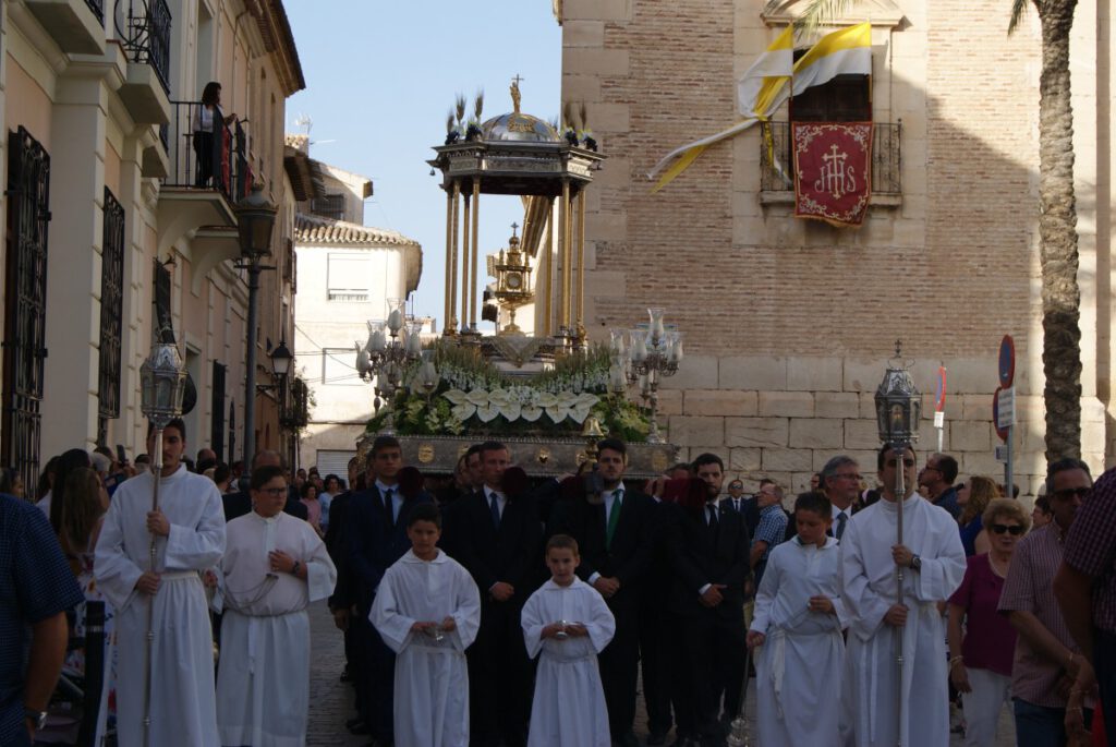 Con motivo de la festividad del Corpus Christi este domingo 11 de junio, se celebrará la Solemne Eucaristía a las 18:00h. en la Iglesia de Ntra. Sra. de la Asunción oficiada por D. José Antonio García López, Consiliario de la Junta de Hermandades Pasionarias de Cieza, y el posterior desfile de la carroza que portara al Santísimo Sacramento a las 19:15 horas por las calles de Cieza.
