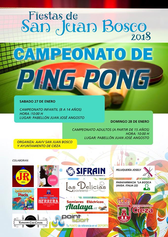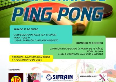 10 horas, Campeonato de Ping Pong Adultos en Pabellón Juan José Angosto.