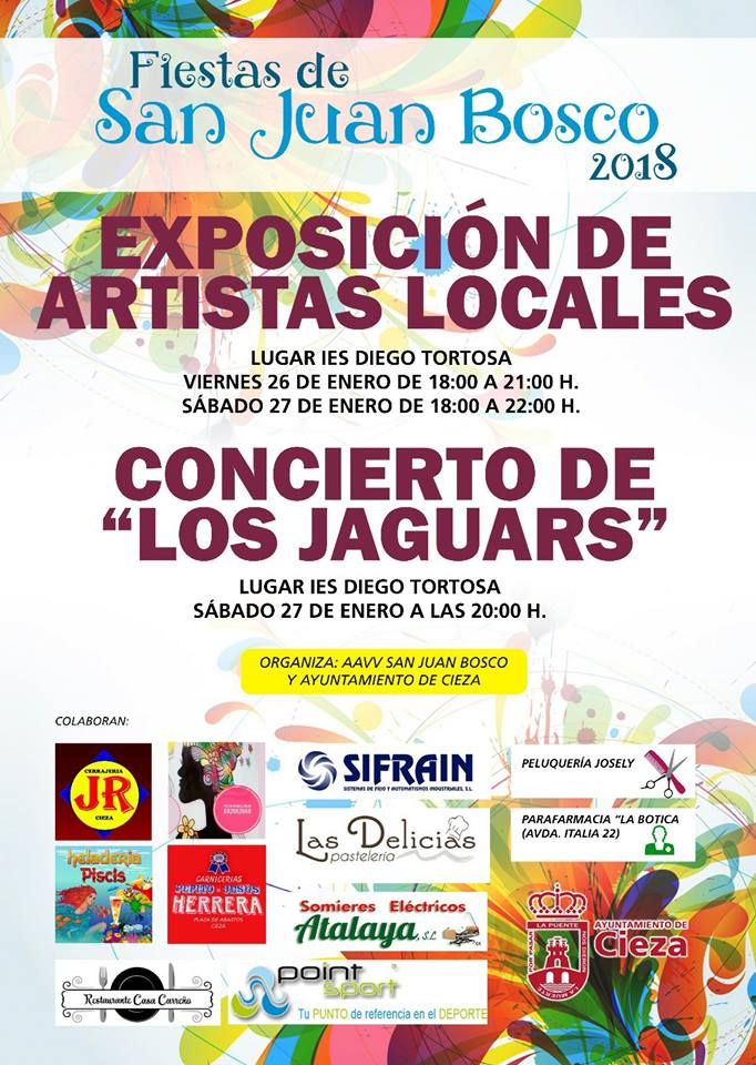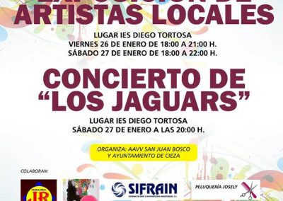 Este año, además de diversos conciertos, concursos, campeonatos y chocolatada, cuenta como novedad con la exposición de artistas ciezanos que, con fines benéficos, se inaugurará este viernes en el IES Diego Tortosa. La muestra estará abierta al público el sábado en horario de 18.00 a 20.00 horas, coincidiendo con el concierto de la formación musical Jaguars, que se celebrará también allí a las 20.00 horas.