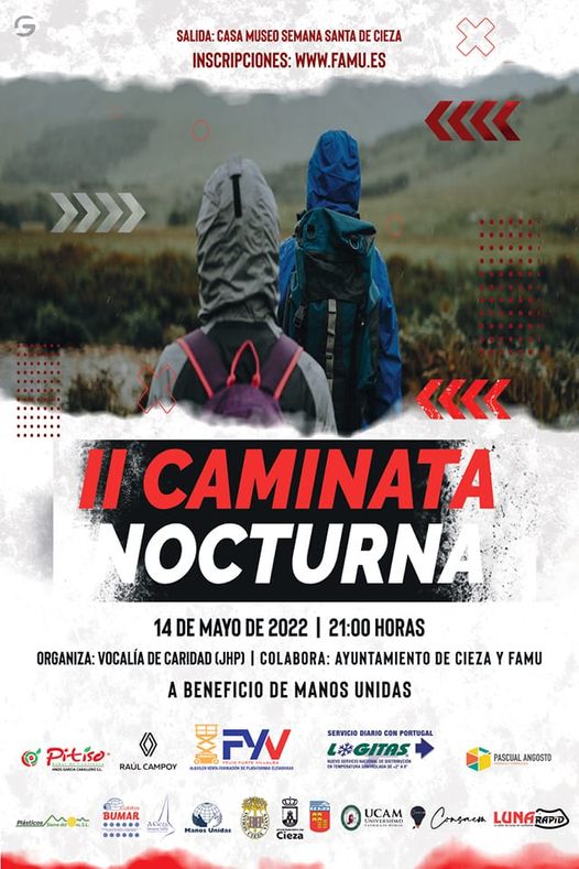 La Vocalía de Caridad de la Junta de Hermandades Pasionarias de Cieza organiza la II CAMINATA SOLIDARIA 2022, en colaboración con el Ayuntamiento de Cieza, la FAMU – Federación de Atletismo de la Región de Murcia y a beneficio de Manos Unidas.