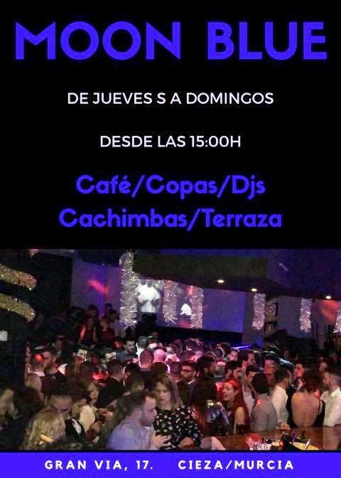 Moon Blue es tu local de copas en Cieza, contamos con un ambiente joven y distendido, donde pasar un rato agradable con la pareja o amigos, ya que abrimos de jueves a domingo desde las 15 horas para que tomes el café de la tarde con nosotros, degustar una refrescante copa o saborear una cachimba.