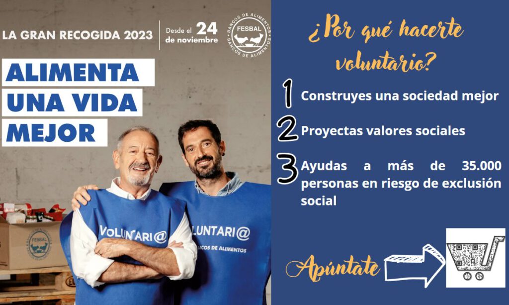 Se necesitan voluntarios para cubrir los 5 supermercados asignados para esta gran recogida 2023, organizada por el Banco de Alimentos del Segura de Murcia.