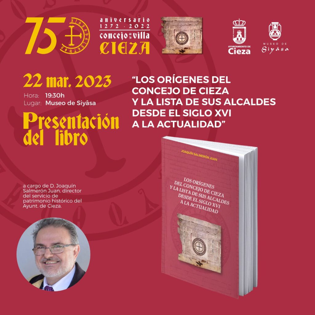 El próximo miércoles 22 de marzo a las 19:30 horas y en el Museo de Siyâsa podremos asistir a la presentación del nuevo libro del ciezanísimo Joaquín Salmerón Juan, director del servicio de patrimonio histórico del Ayuntamiento de Cieza, se titula ‘LOS ORÍGENES DEL CONCEJO DE CIEZA Y
