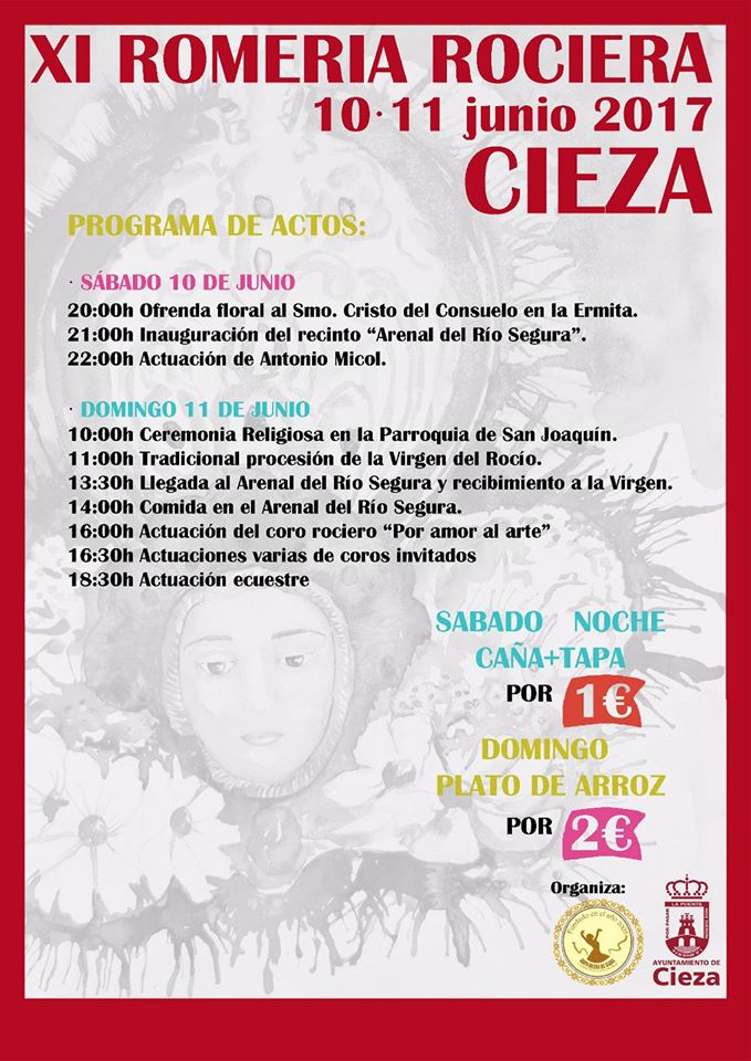 El Grupo Rociero del Segura de Cieza en colaboración con el Ayuntamiento ha preparado un año más diversos actos dentro de la XI Romería Rociera que se celebrará los próximos días 10 y 11 de junio, sábado y domingo.